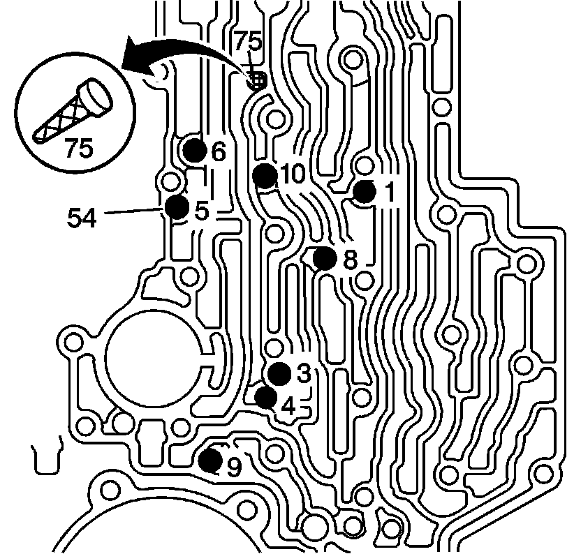 2. Install the TCC solenoid valve screen assembly (75) into the case.