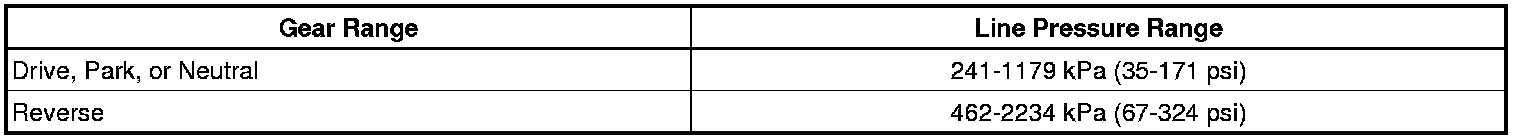 Line pressures are calibrated for two sets of gear ranges-Drive-Park-Neutral, and Reverse. This allows the transmission line pressure to be appropriate for different pressure needs in different gear ranges: