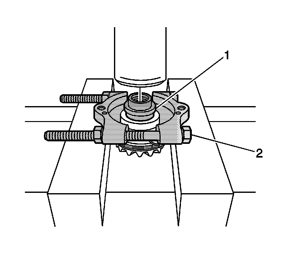 3. Remove the thrust sleeve using the J 22912-O1 (2) and the J 45232 (1), if necessary, and a hydraulic press.