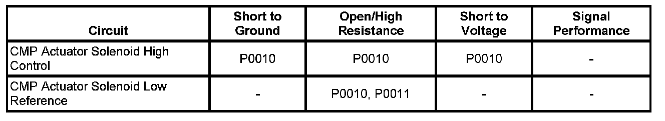 - Camshaft Position (CMP) Actuator Solenoid Control Circuit