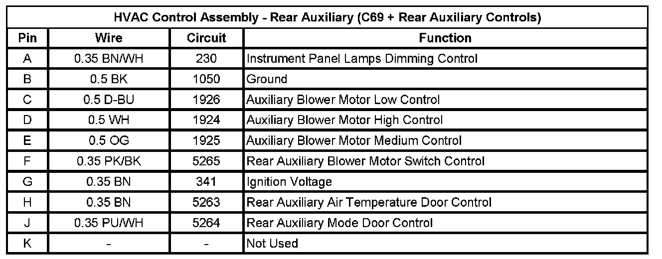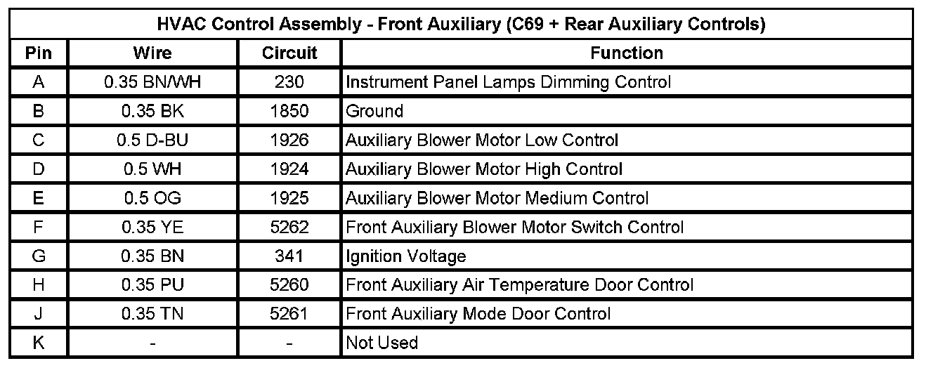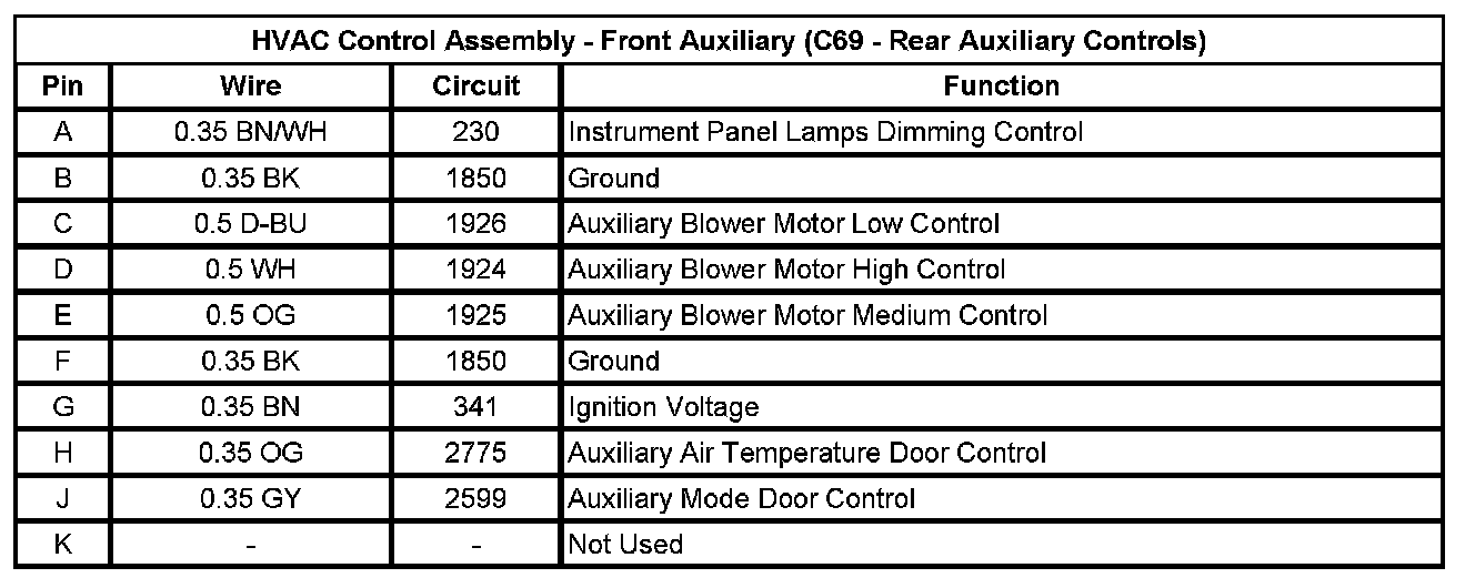 HVAC Control Assembly - Front Auxiliary (C69 - Rear Auxiliary Controls)