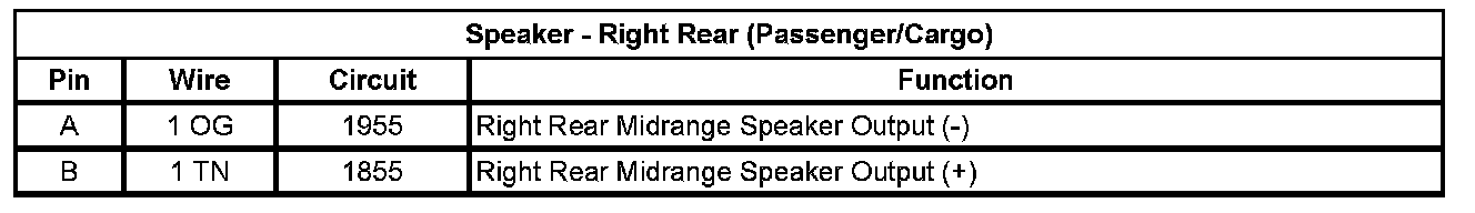 Speaker - Right Rear (Passenger/Cargo)