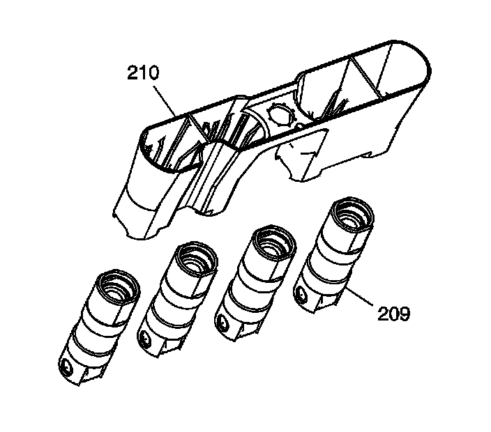 3. Install the valve lifters and guide assembly (210) to the engine block.