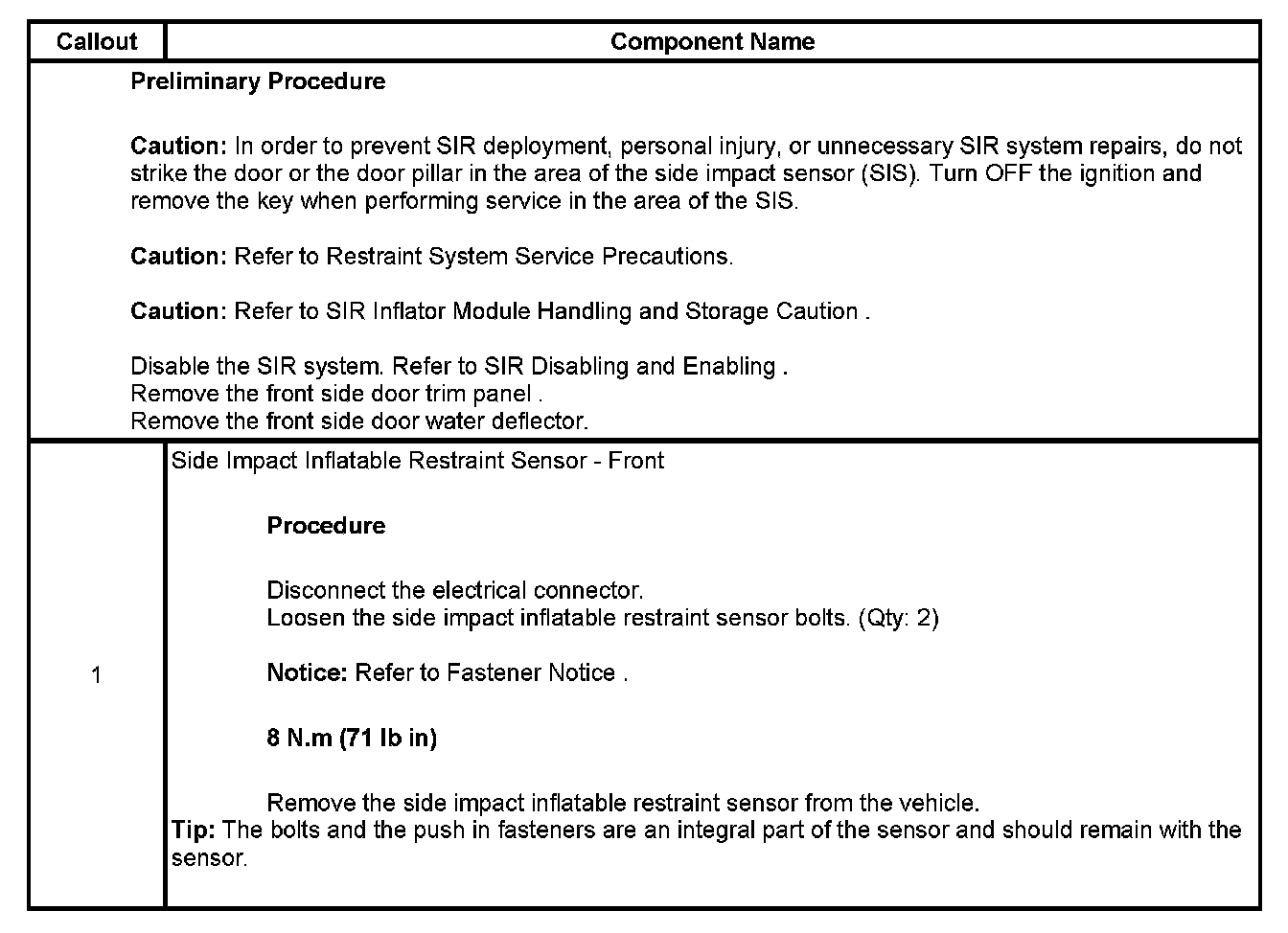 Inflatable Restraint Side Impact Sensor Replacement - Front