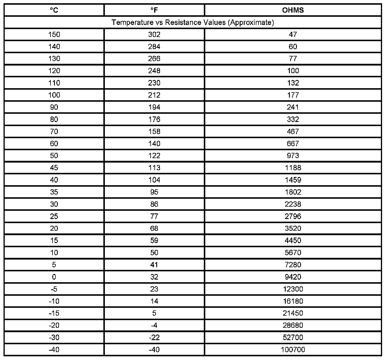 Temperature Versus Resistance (ECT Sensors)