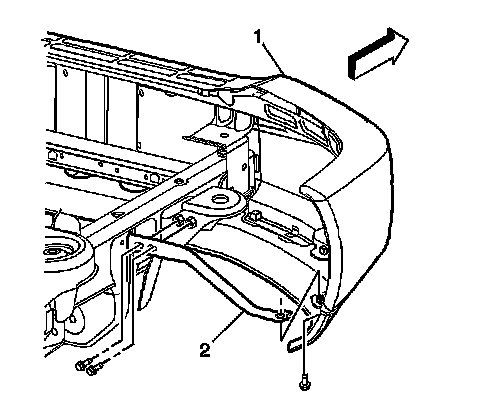 2.Install the bolts that retain the bracket (2) to the bumper (1).