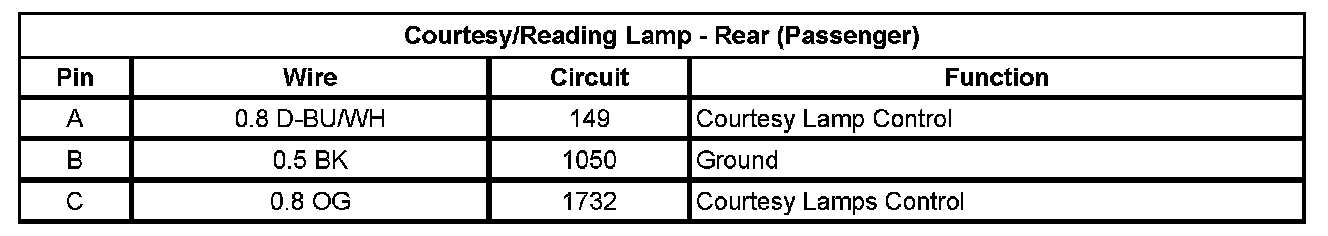 Courtesy/Reading Lamp - Rear (Passenger)