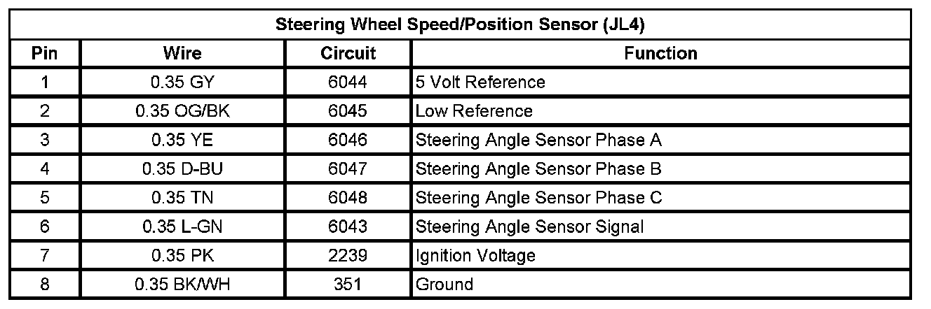Steering Wheel Speed/Position Sensor (JL4)