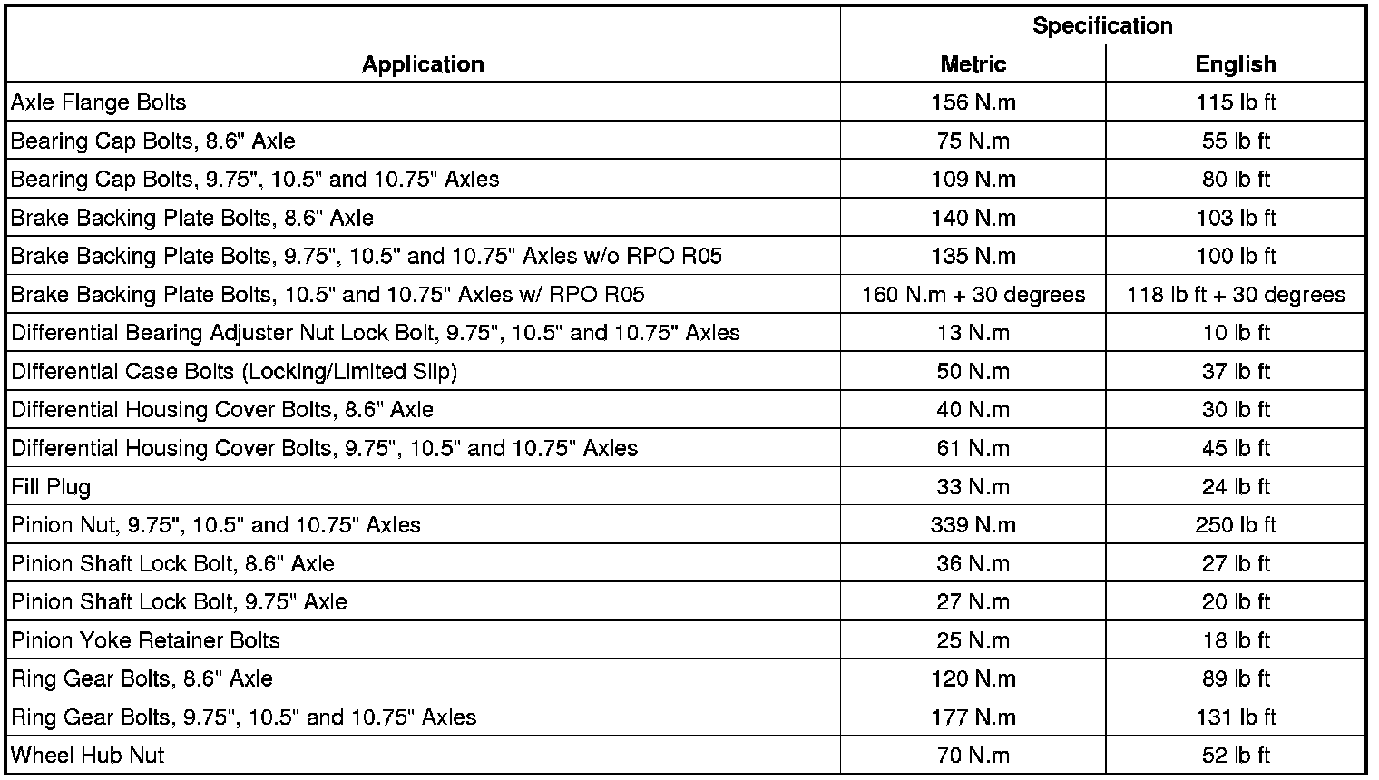 Fastener Tightening Specifications