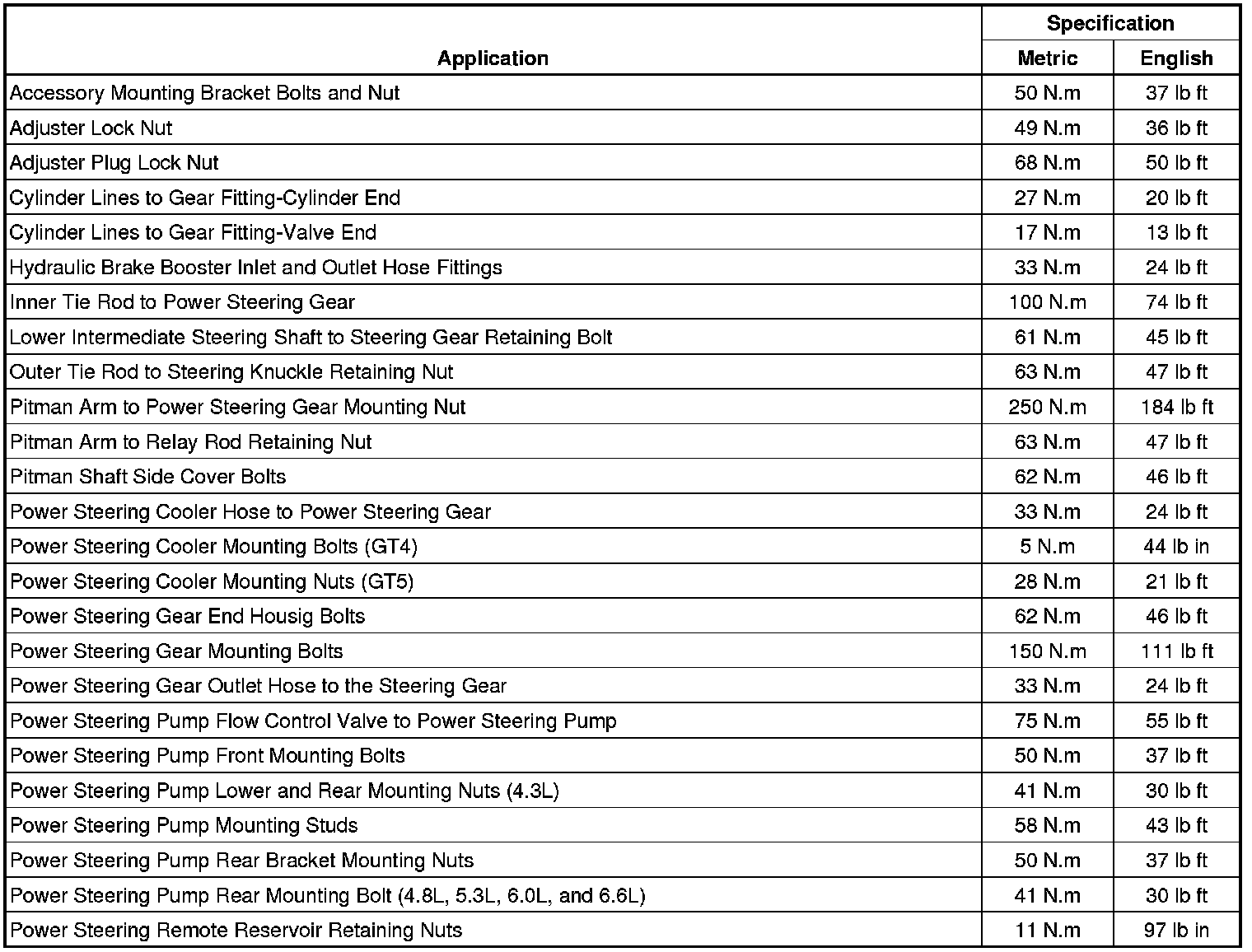Fastener Tightening Specifications