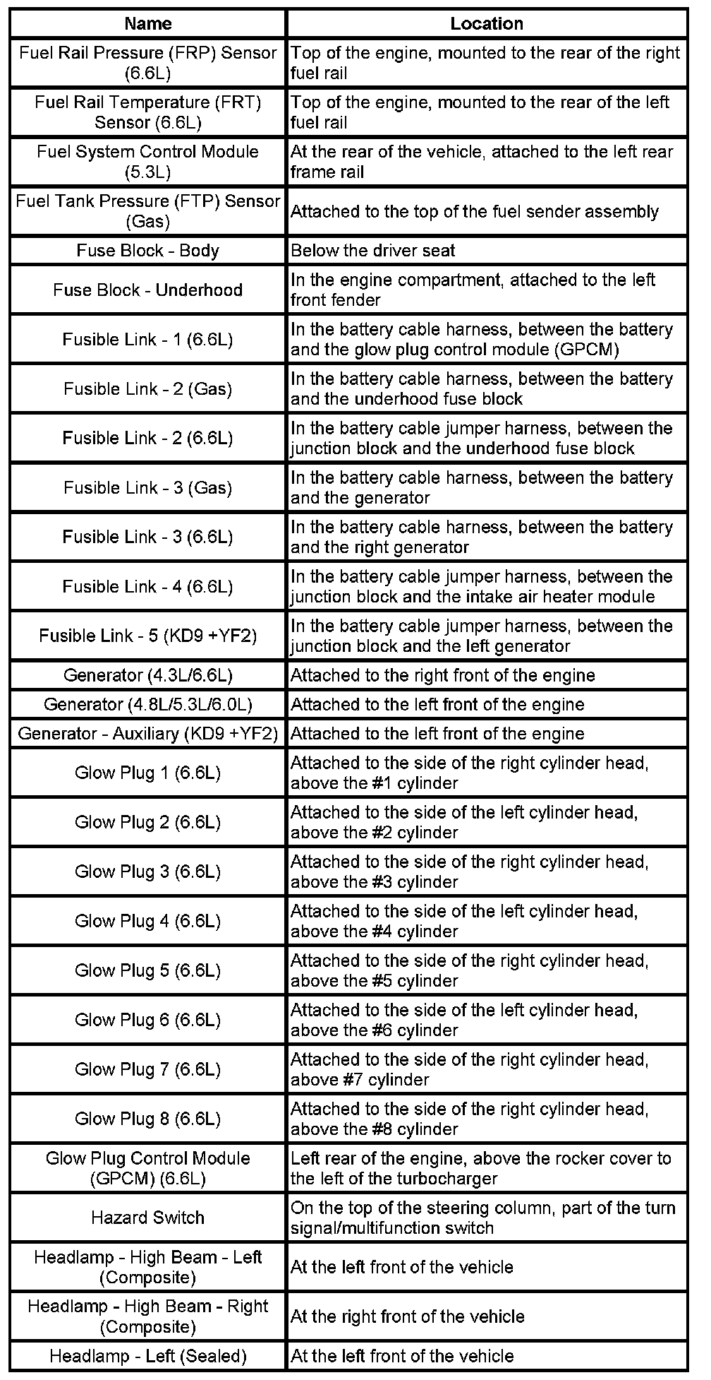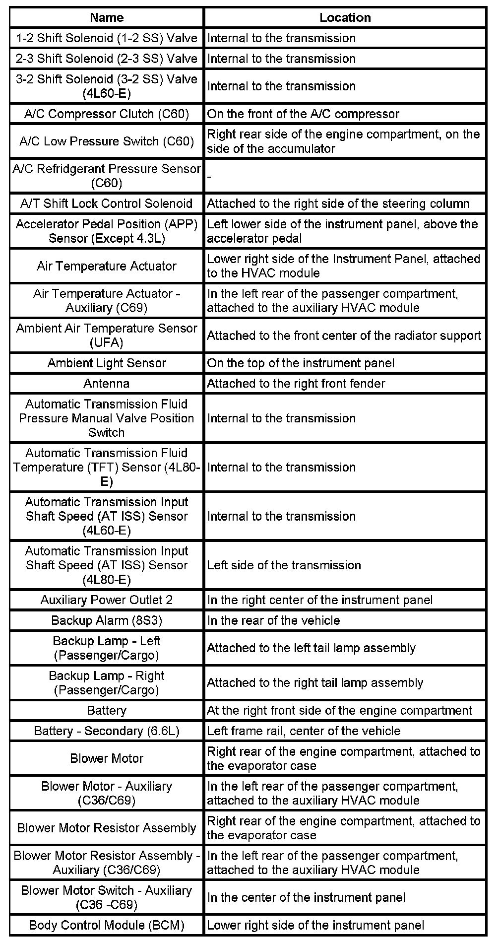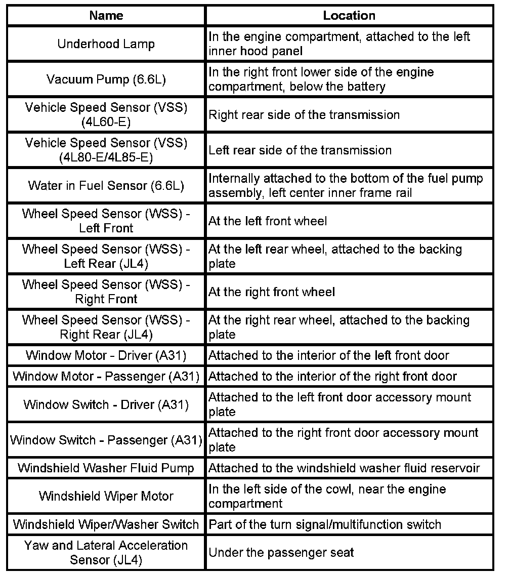 Master Electrical Component List