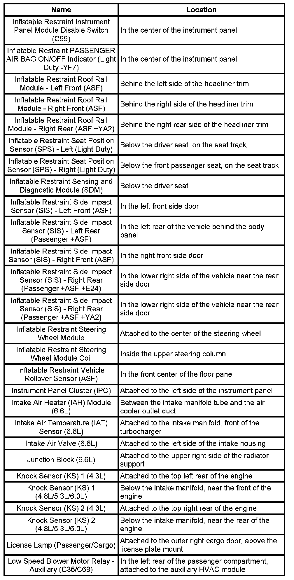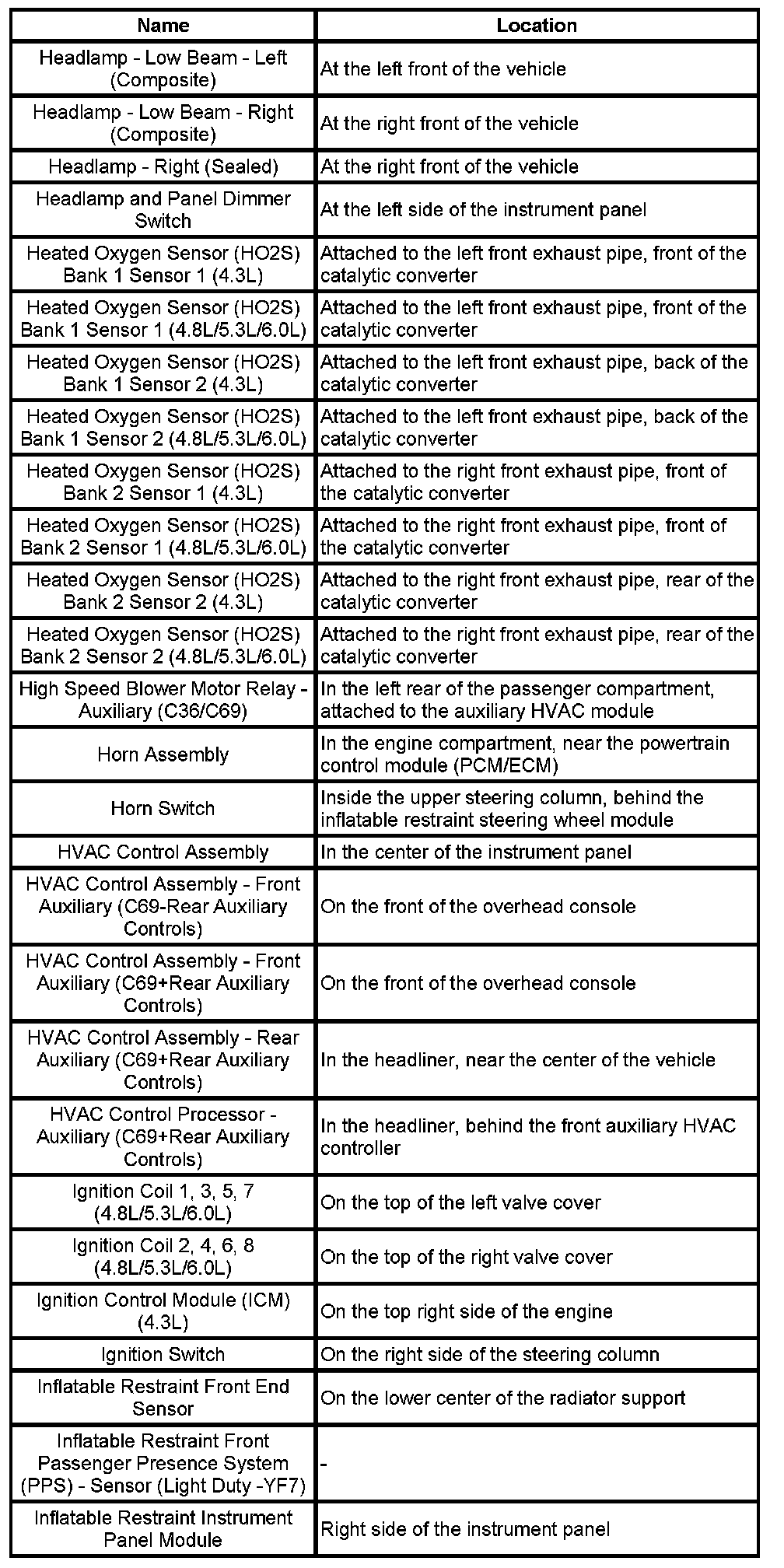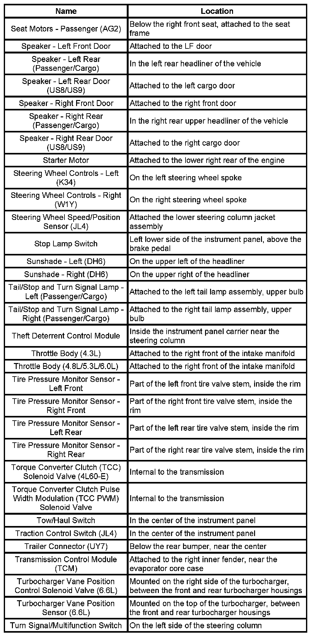 Master Electrical Component List