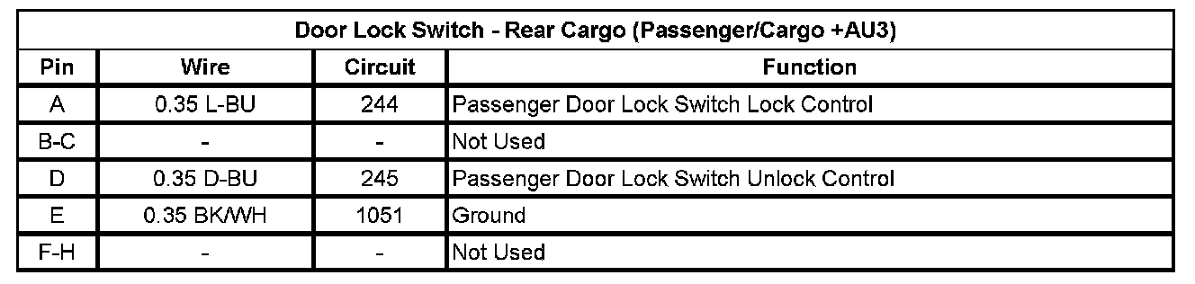 Door Lock Switch - Rear Cargo (Passenger/Cargo +AU3)