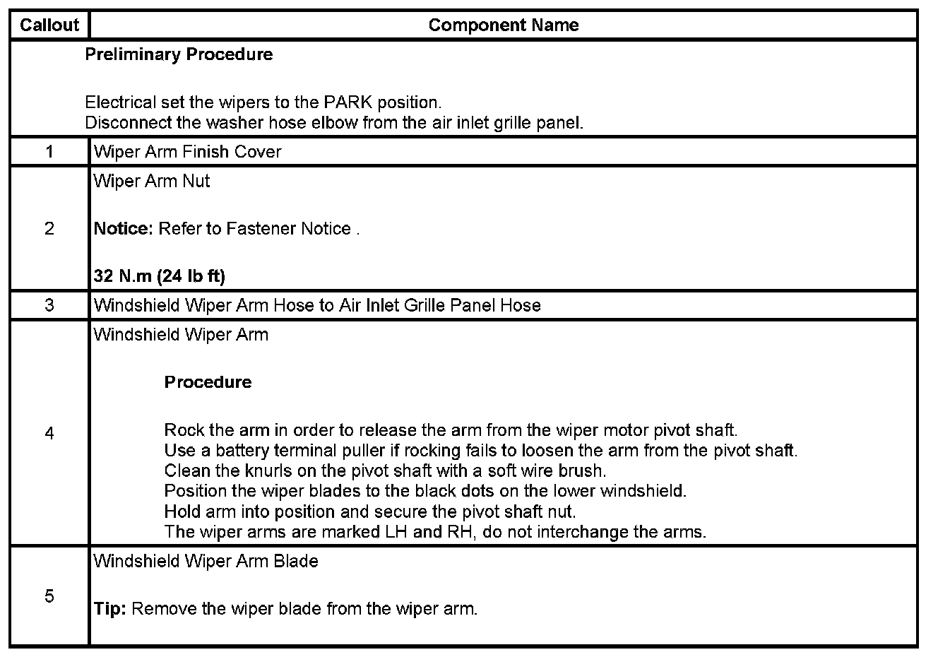 Wiper Arm: Service and Repair