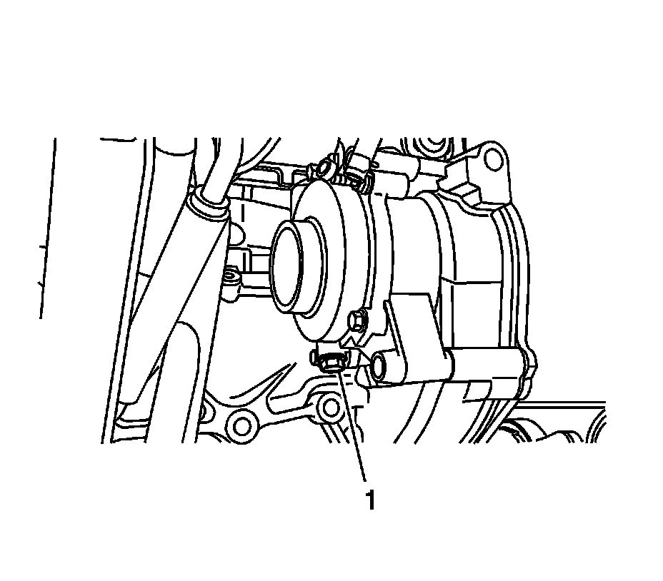 7. Remove the water pump drain plug (1).
