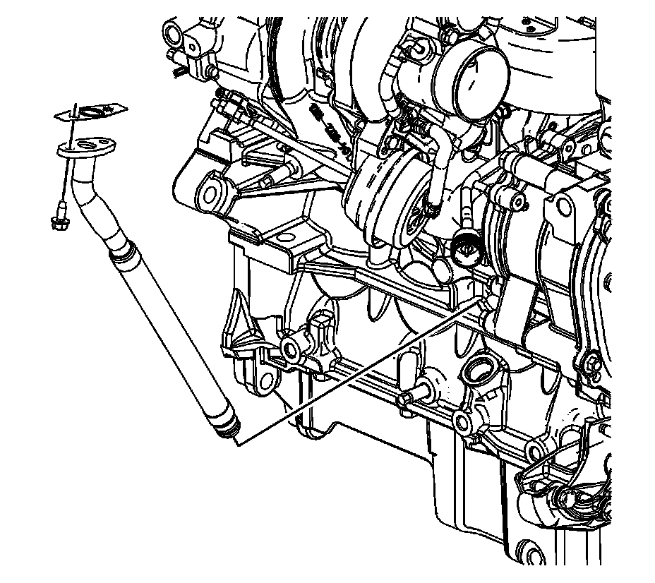 Notice: Do not twist the turbocharger oil feed pipe. Twisting of the feed pipe will result in the collapse and deformation of the plastic pipe, restricting oil flow and causing turbocharger damage. During turbocharger replacement, gently push the oil feed pipe towards the front of the engine to clear the turbocharger. Assistance may be required to keep the pipes clear of the turbocharger during removal or installation.