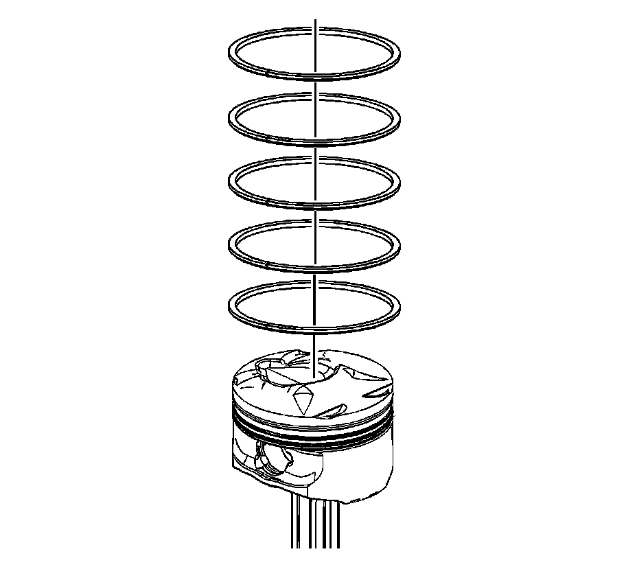 1. Disassemble the piston rings. Use a suitable tool to expand the rings. The piston rings must not be reused.