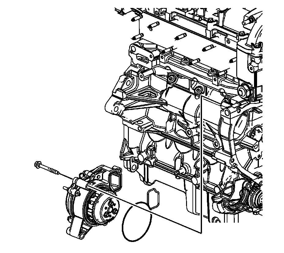 Important: Do not install the front water pump bolt until after the engine front cover is on.