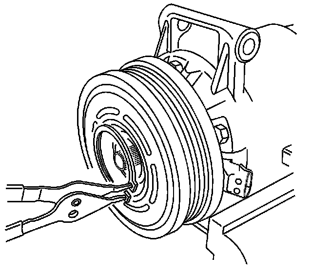 2. Remove and discard the compressor clutch plate bolt.