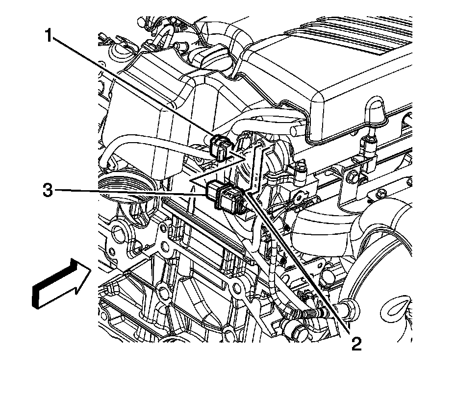 3. Disconnect the engine wiring harness electrical connector (1) from the HO2S electrical connector (3).