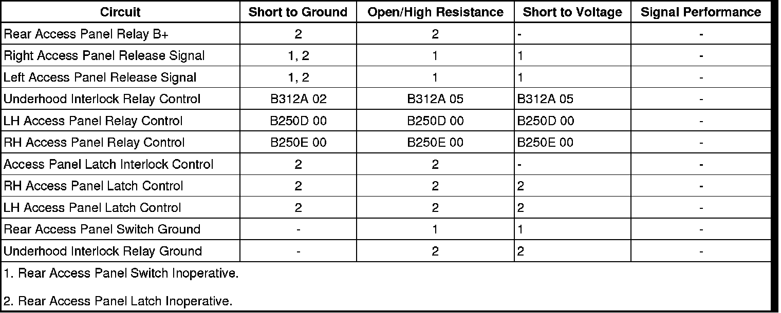 5. If all circuits test normal, test or replace the REAR ACCESS PANEL relay.