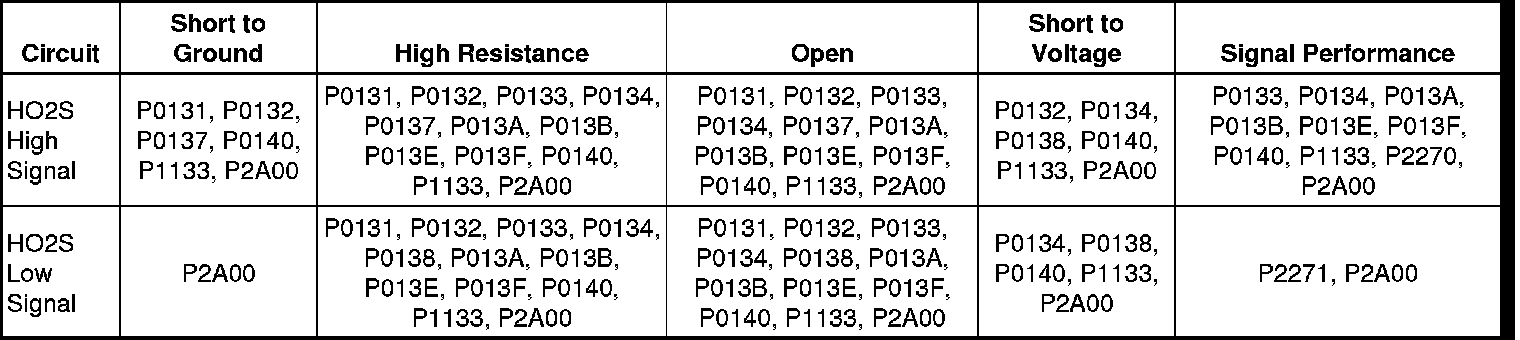 * The ECM detects that the O2 sensor cannot achieve voltage equal to or less than 100 mV.