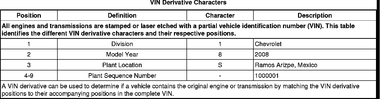 Vehicle, Engine and Transmission ID and VIN Location, Derivative and Usage
