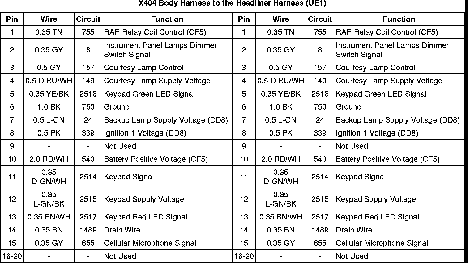 X404 Body Harness to the Headliner Harness (UE1)