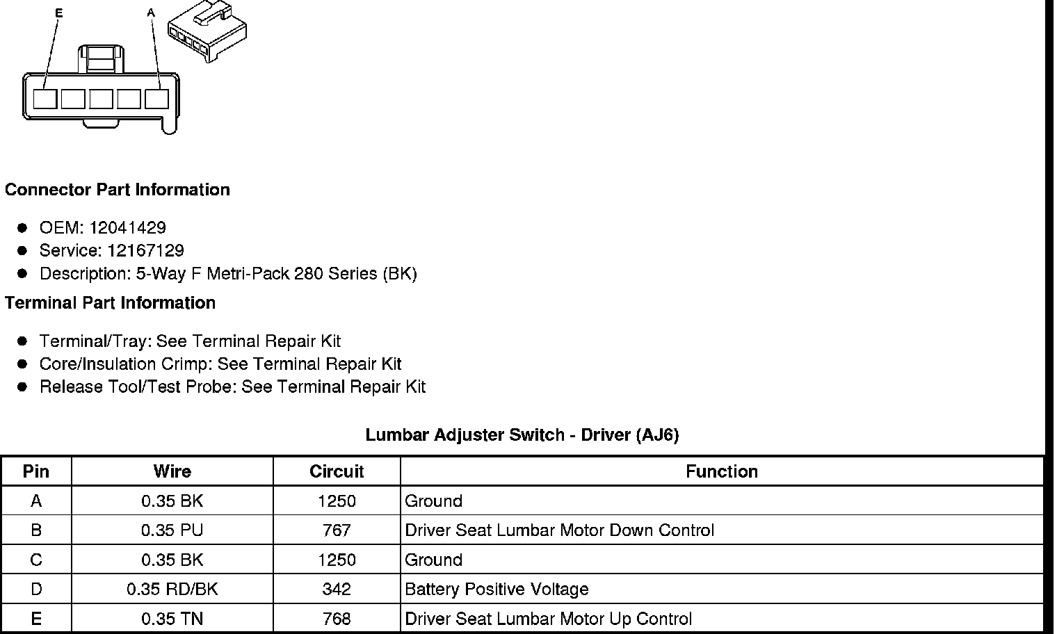 Lumbar Adjuster Switch - Driver (AJ6)