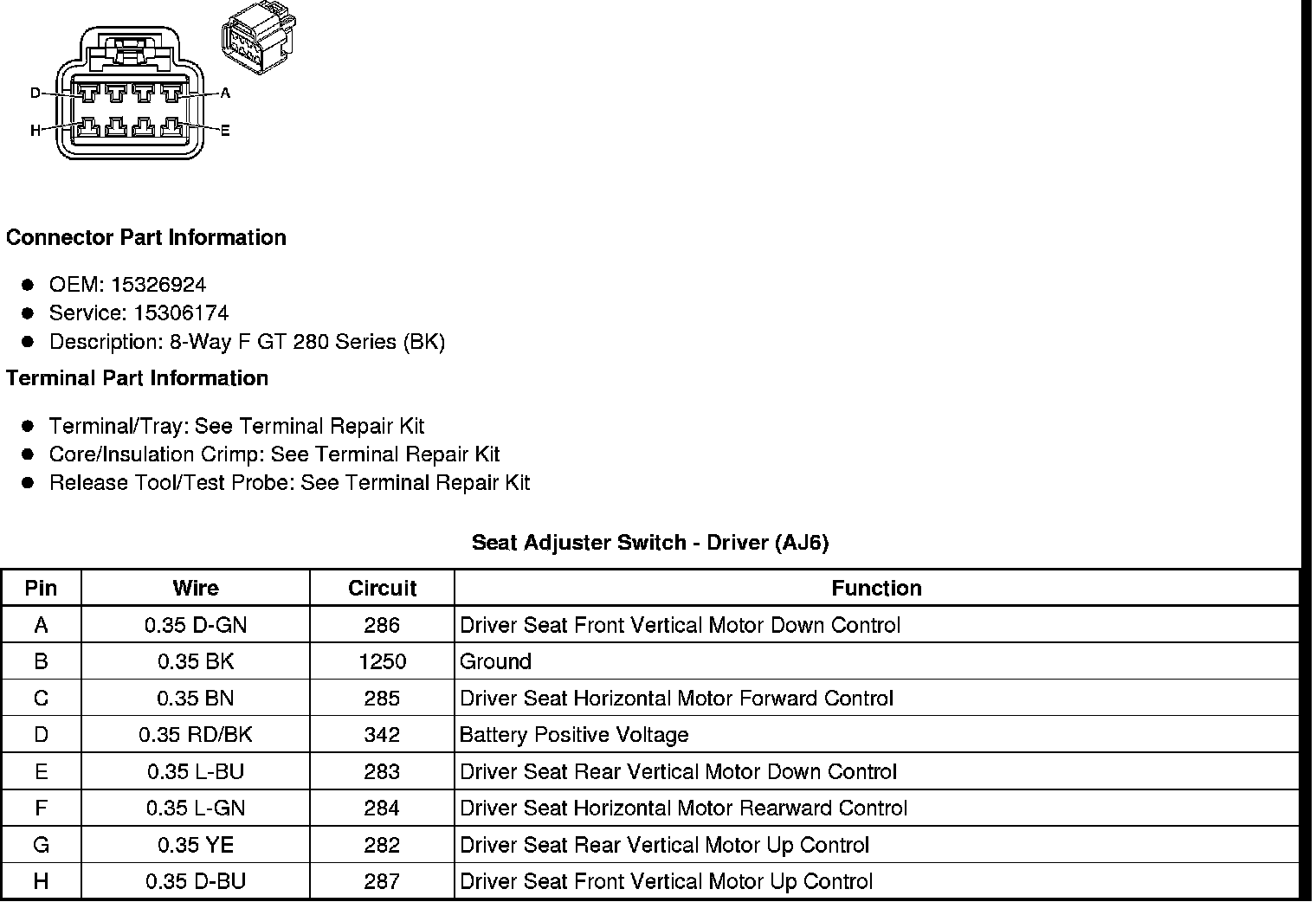 Seat Adjuster Switch - Driver (AJ6)