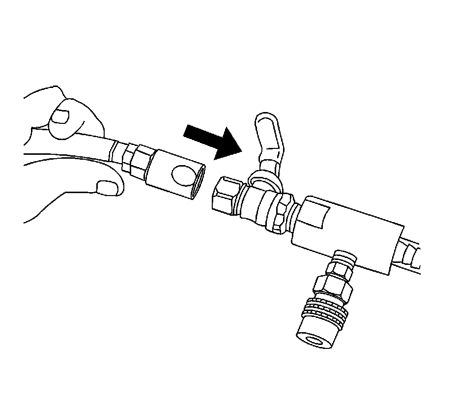6. Attach the fill hose to the barb fitting on the vacuum gage assembly.