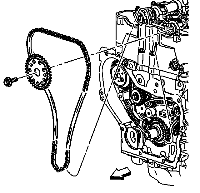 Important: The timing chain tensioner must be removed to unload chain tension before the timing chain is removed.