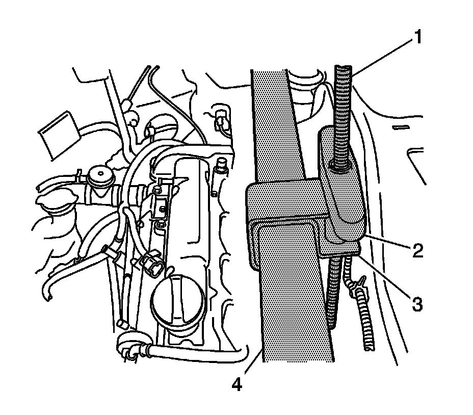 8. Remove the J 28467-4A (2) from across the engine compartment.