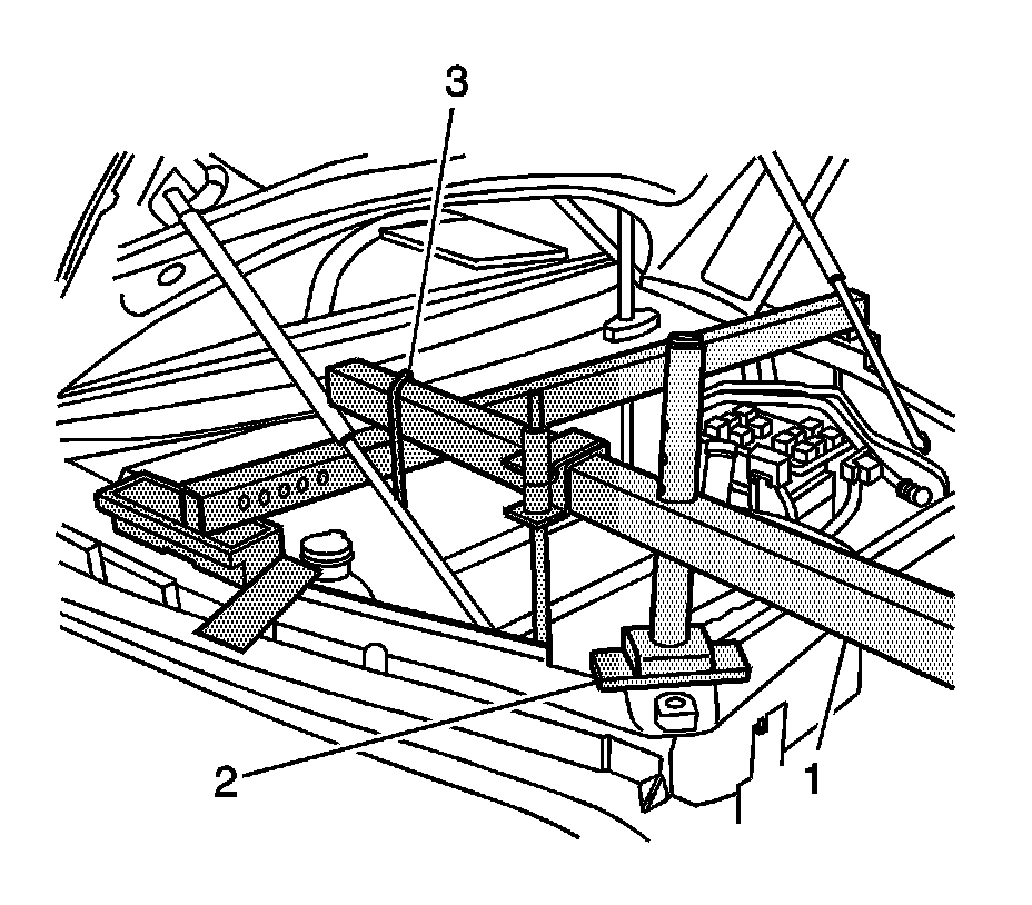 3. From the J 28467-B , place the J 28467-4A (2) across the engine compartment on top of the J 41602 (1).