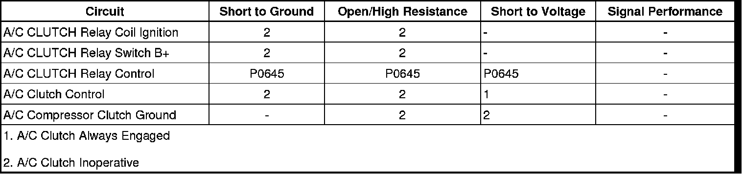 • If the A/C compressor clutch does not activate, test the control circuit for an open/high resistance. If the circuit tests normal, test or replace the A/C compressor clutch.