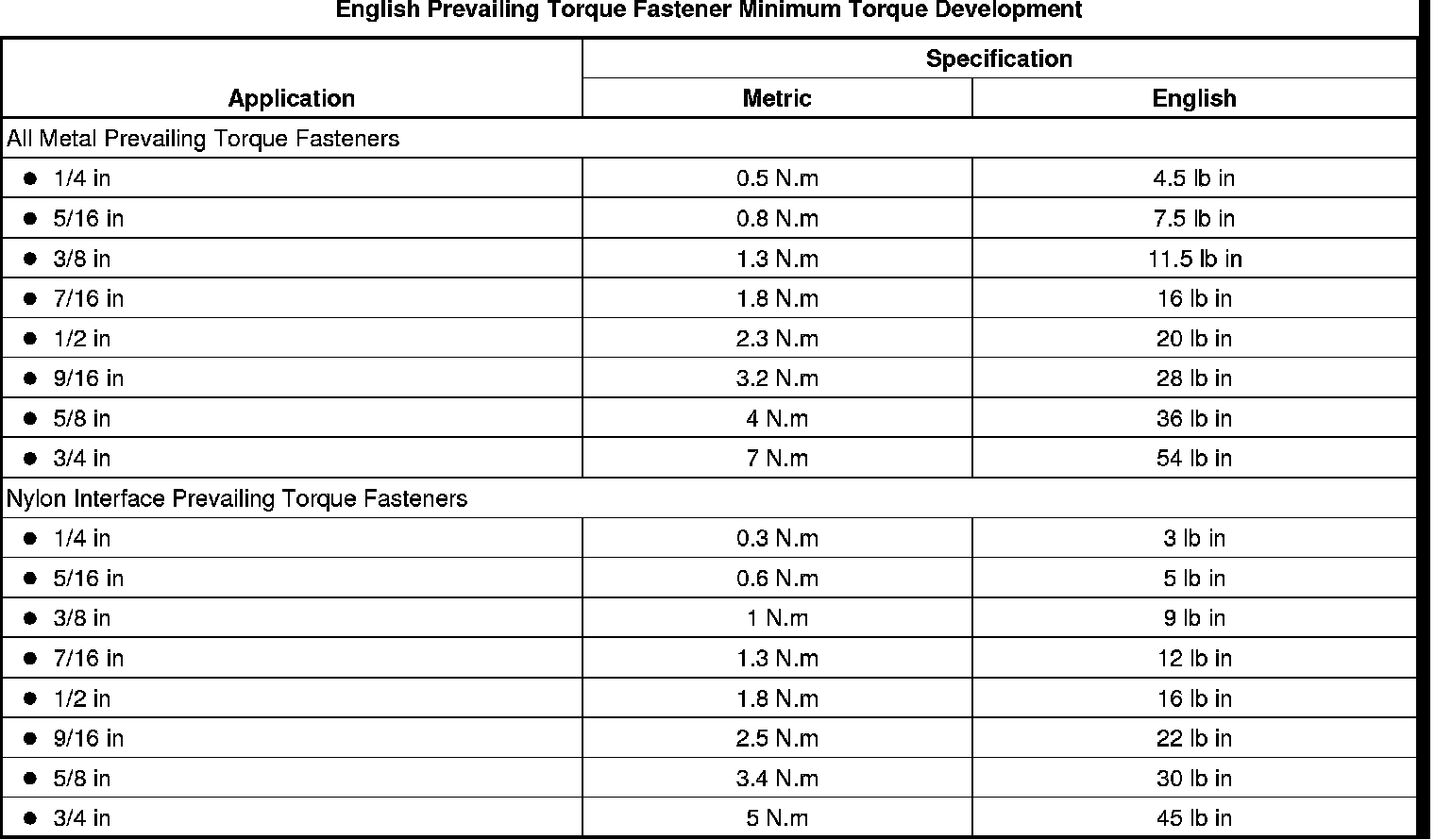 * The fastener develops the specified minimum torque against its counterpart prior to the fastener seating