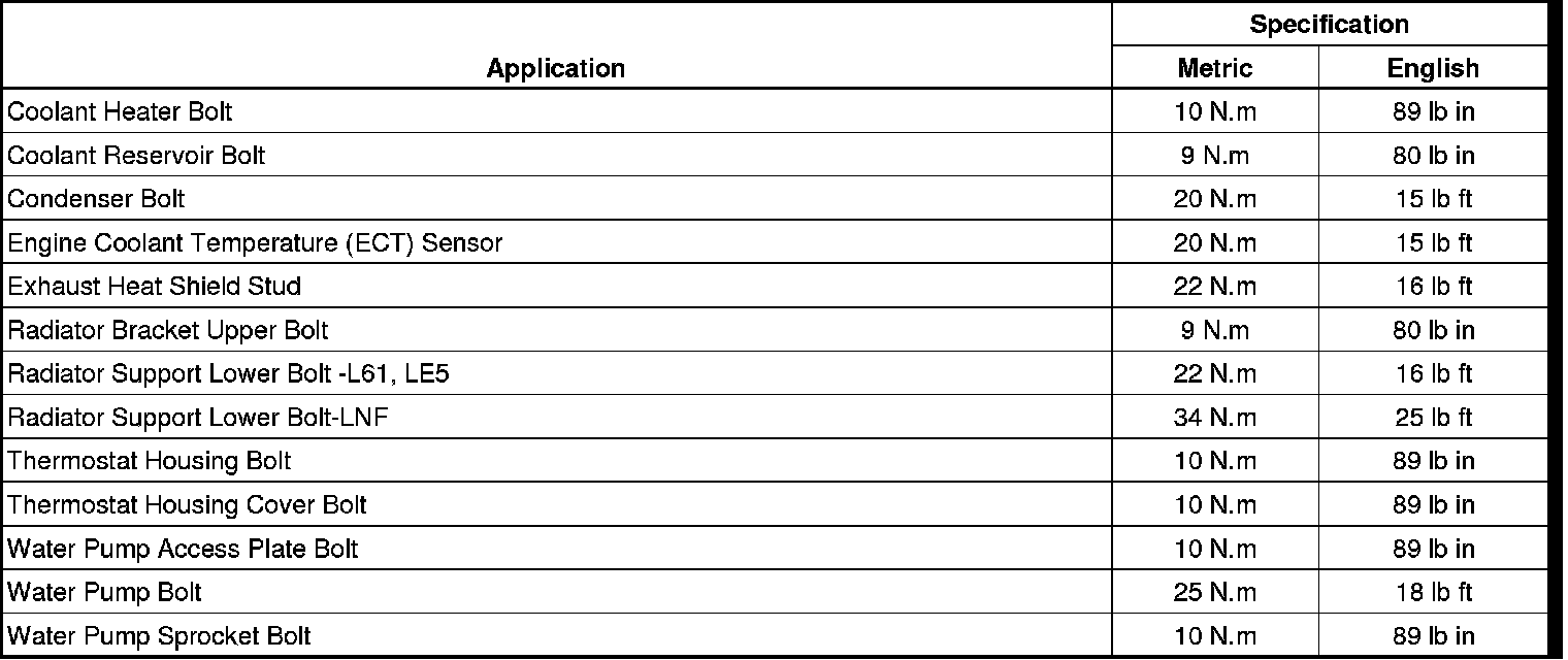 Fastener Tightening Specifications