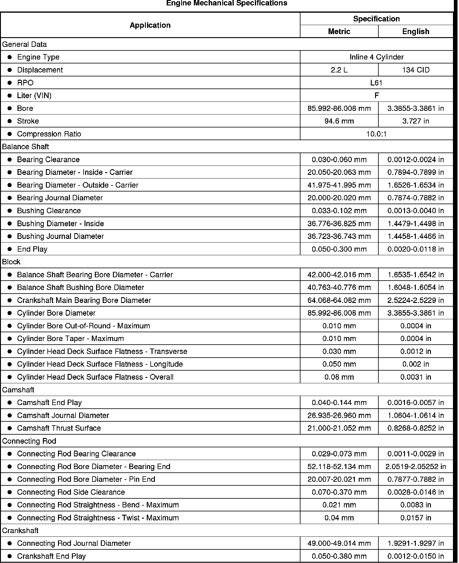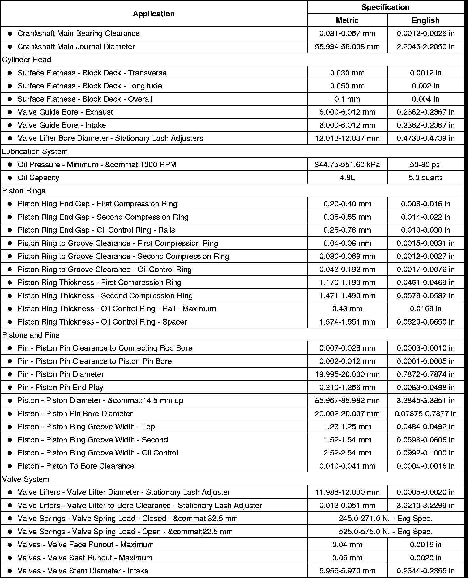 Engine Mechanical Specifications