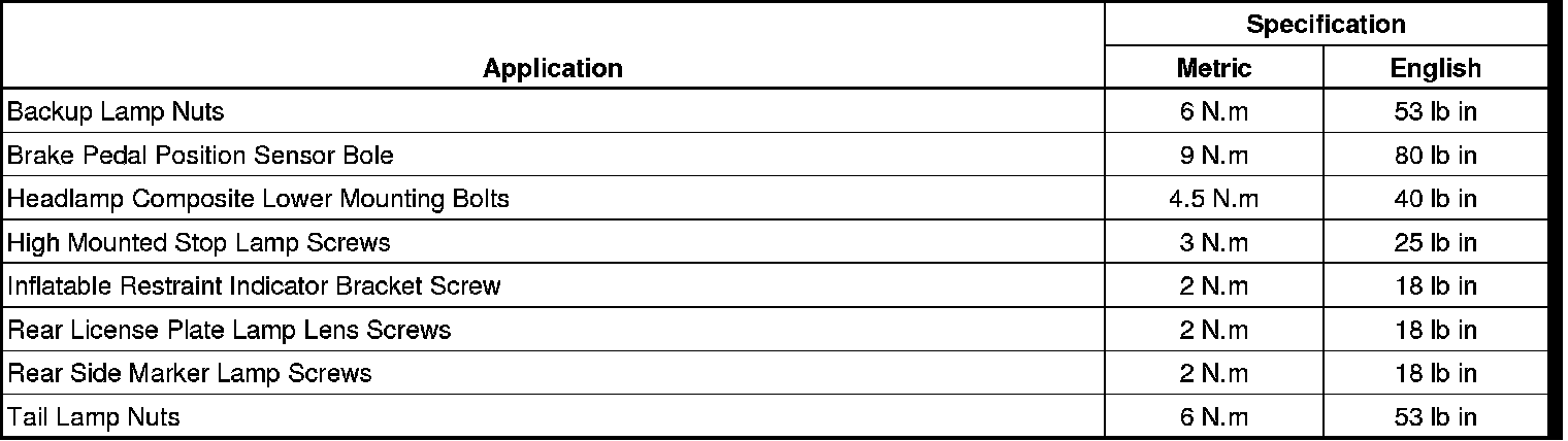 Fastener Tightening Specifications