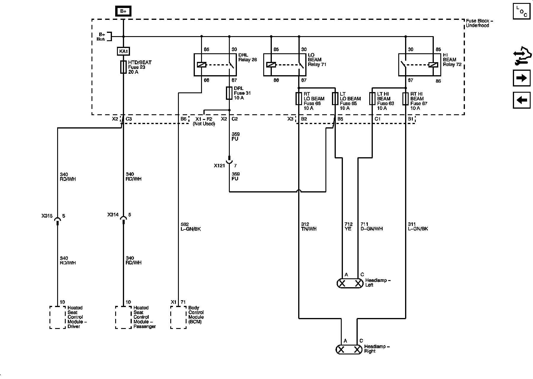 Underhood Fuse Block - LOW BEAM, HIGH BEAM, DRL Relays, HTD SEAT, DRL, RT LO BEAM, LT LO BEAM, LT HI BEAM, RT HIGH BEAM Fuses