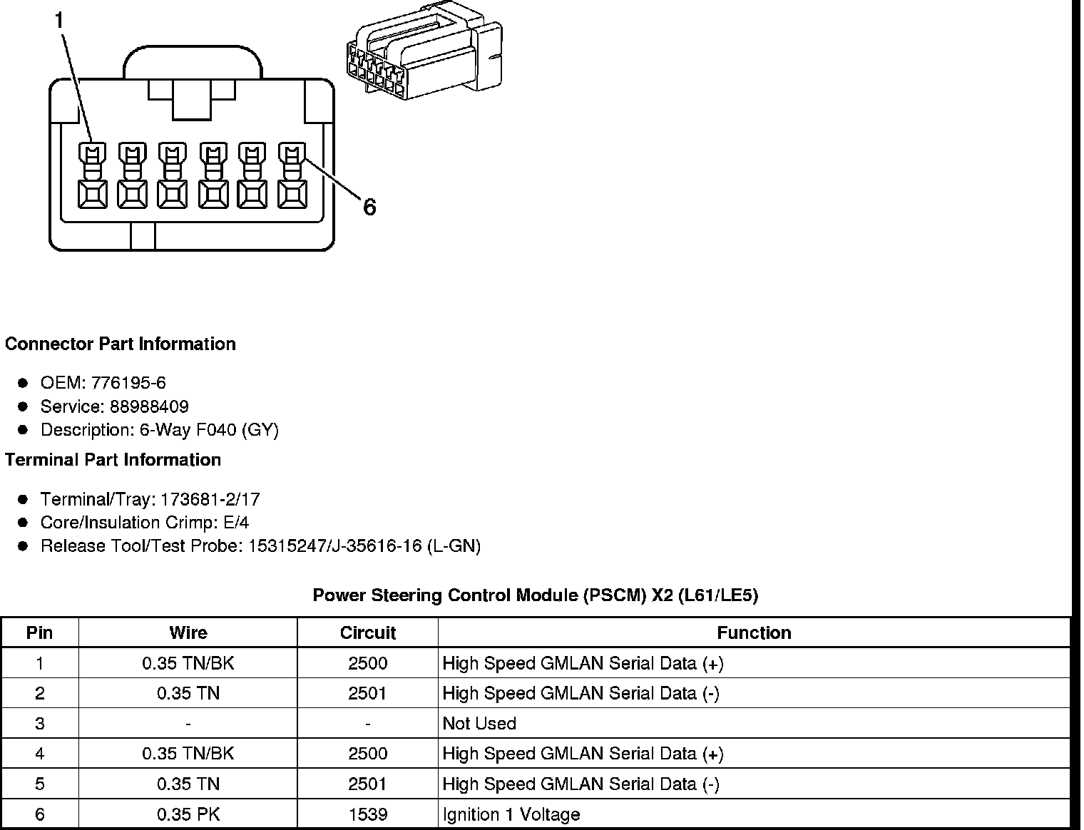 Power Steering Control Module (PSCM) X1 (L61/LE5)
