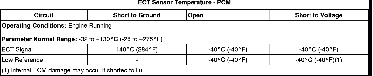 The Typical Scan Tool Data table identifies a scan tool data parameter and its value in reference to potential circuit faults.