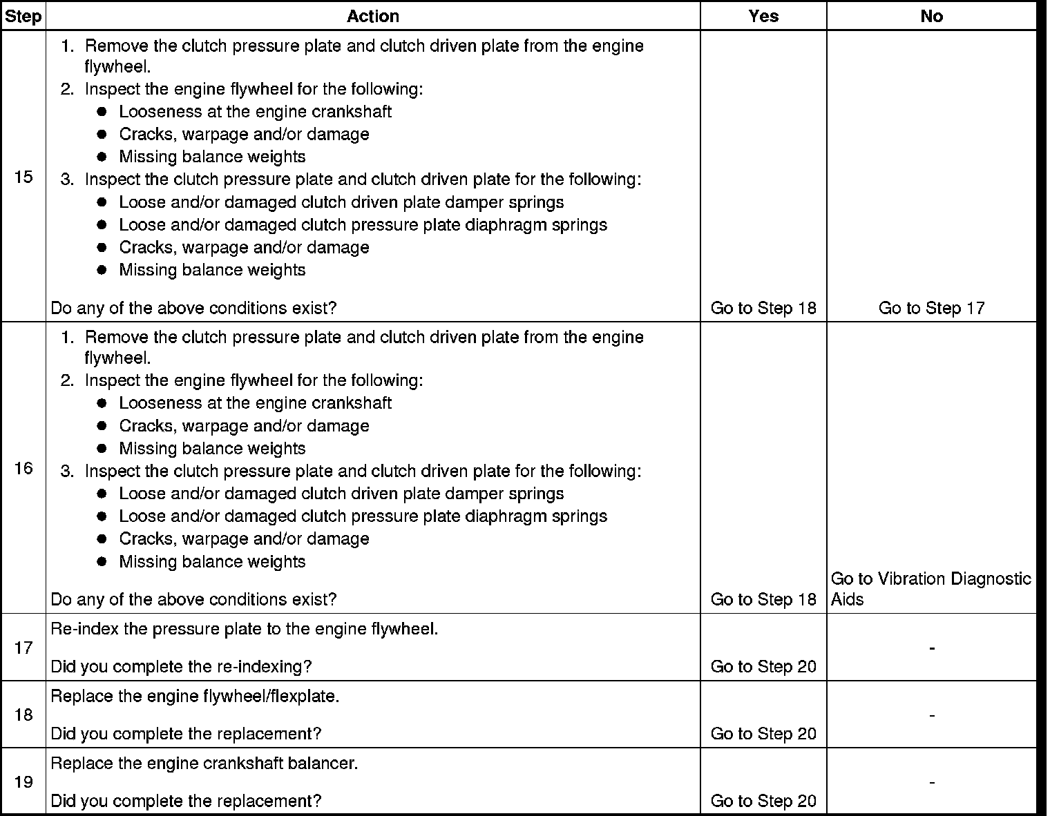 17. Re-indexing the pressure plate to the engine flywheel alters the balance relationship between the pressure plate/flywheel assembly and the rear of the engine.