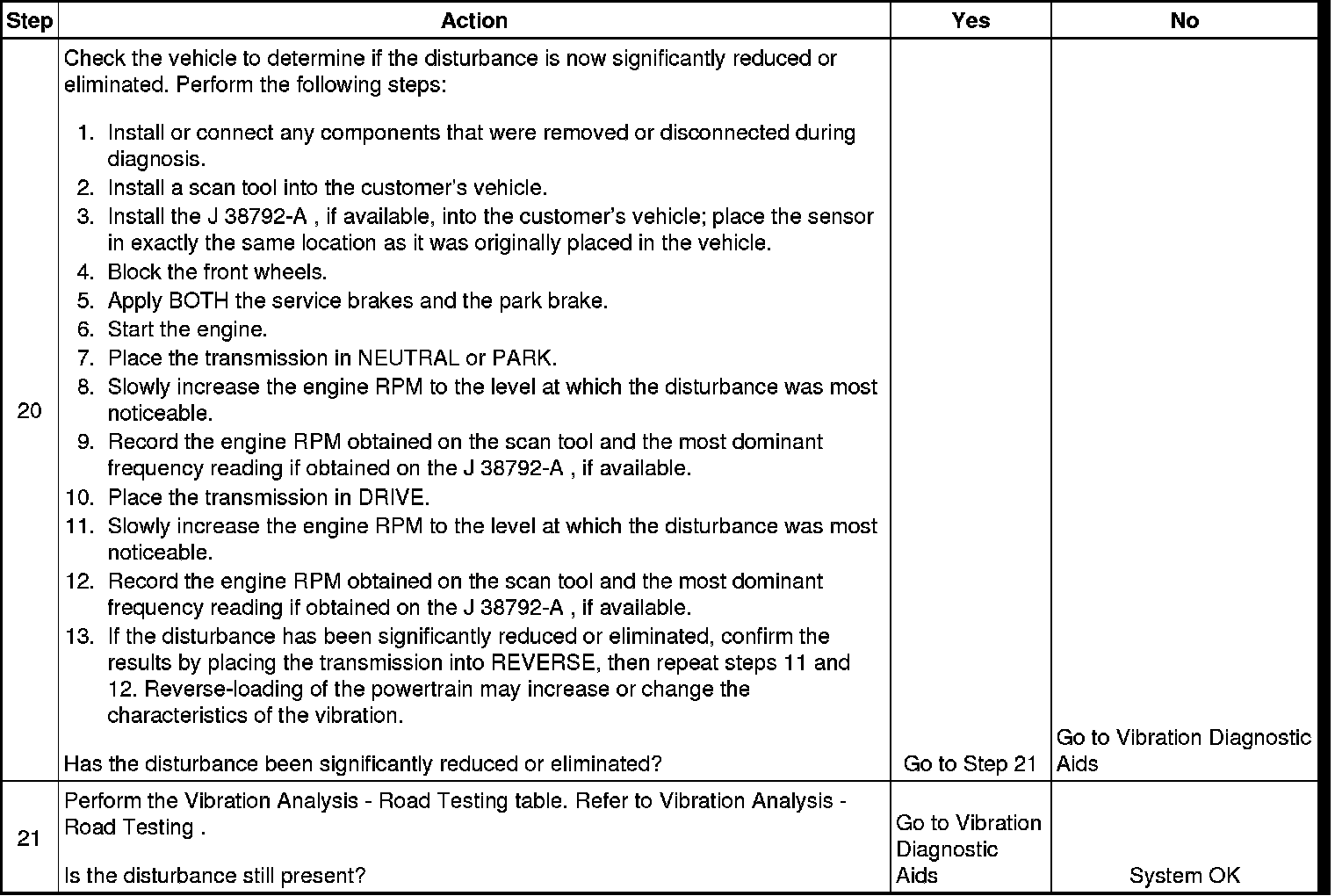 7. This step is designed to isolate the transmission from the engine to determine if the disturbance is related to the engine ONLY.