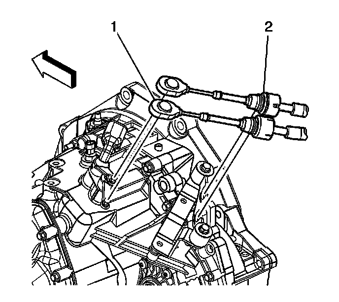 6. Disconnect the cable ends (1) from the transmission shift levers, noting the location for assembly.