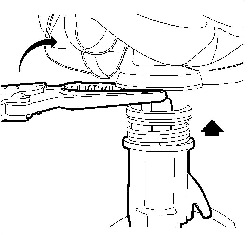 Important: Care must be taken when releasing the 4th gear locking tab. The shifter ring must be pulled upwards to allow 4th gear locking tab to fully release. Excessive clamping force may damage plastic shift control assembly components.