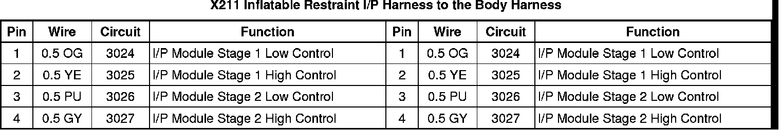 X211 Inflatable Restraint I/P Harness to the Body Harness