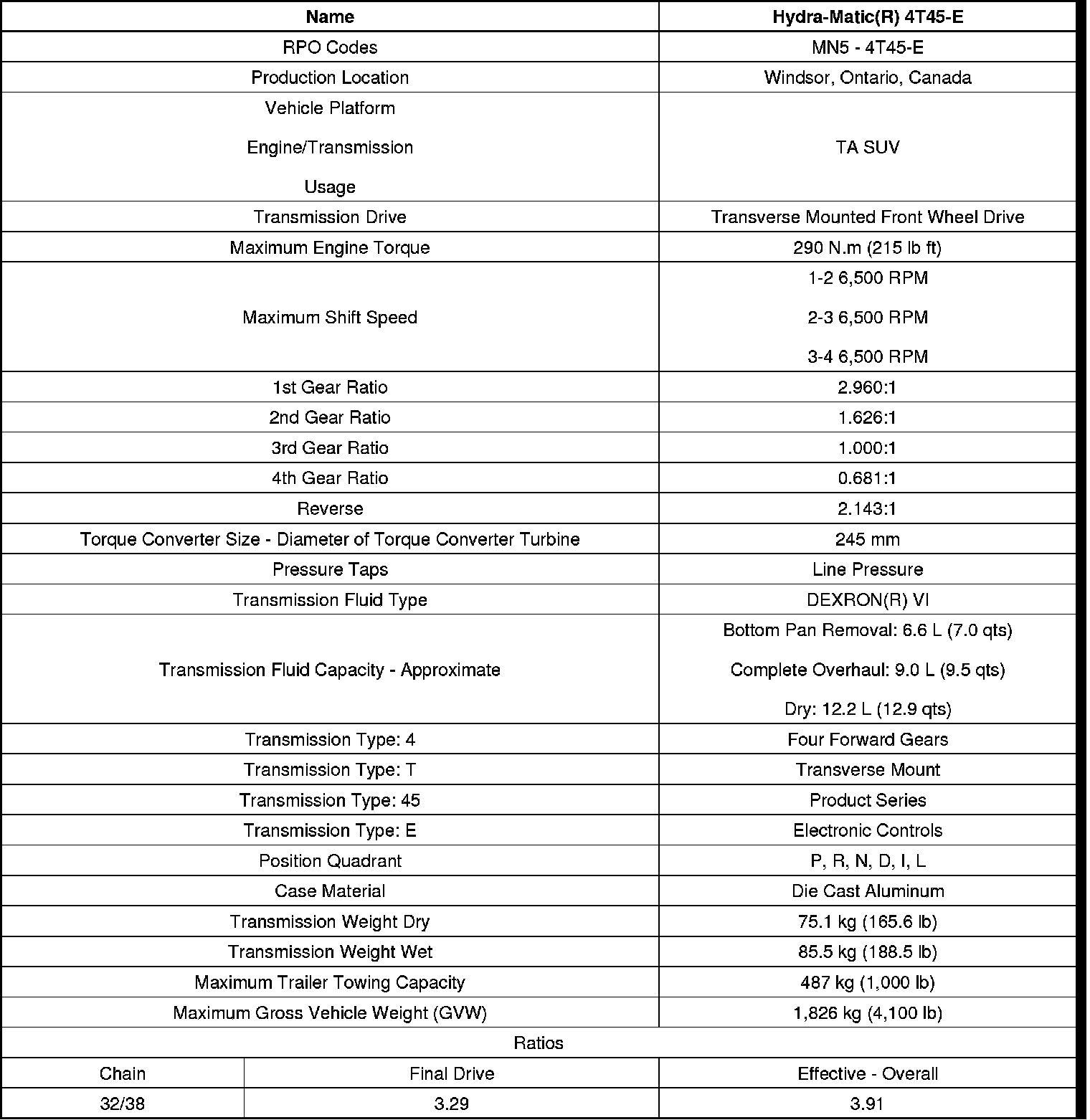 Transmission General Specifications