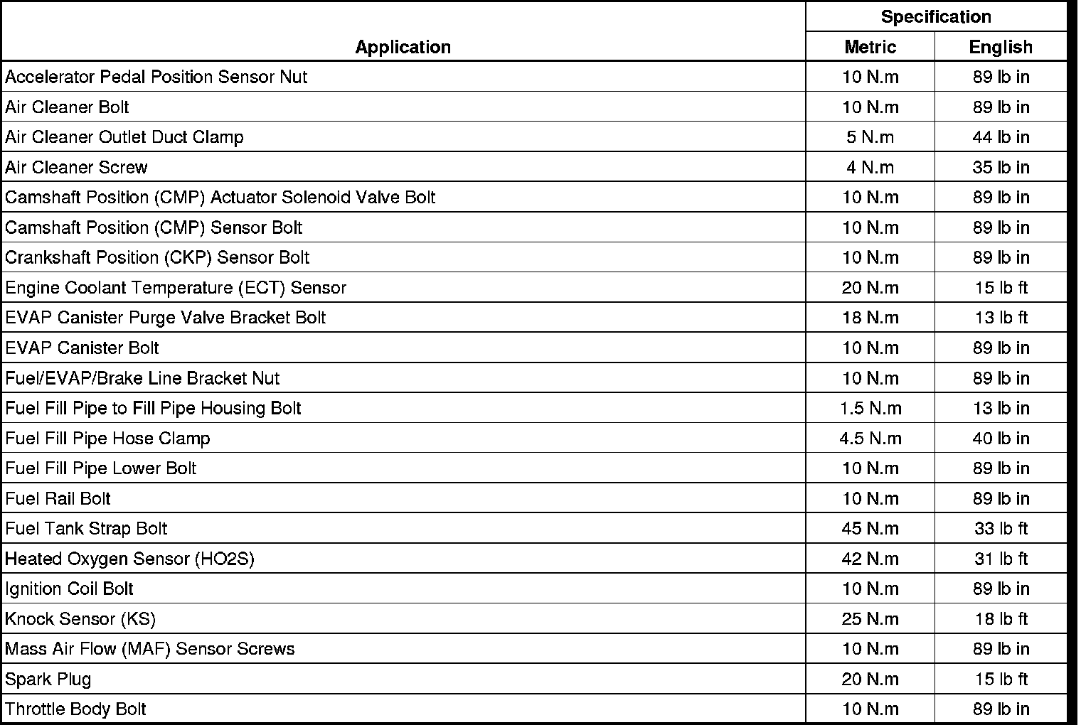 Fastener Tightening Specifications