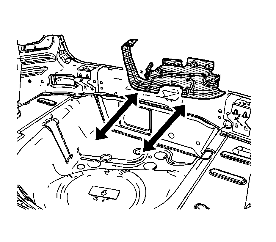 1.Structural adhesive is present at the joint between the battery tray and the rear floor pan. Heat the battery tray at the locations shown with a small flame from an oxy-acetylene torch to release the bond to the rear floor panel.